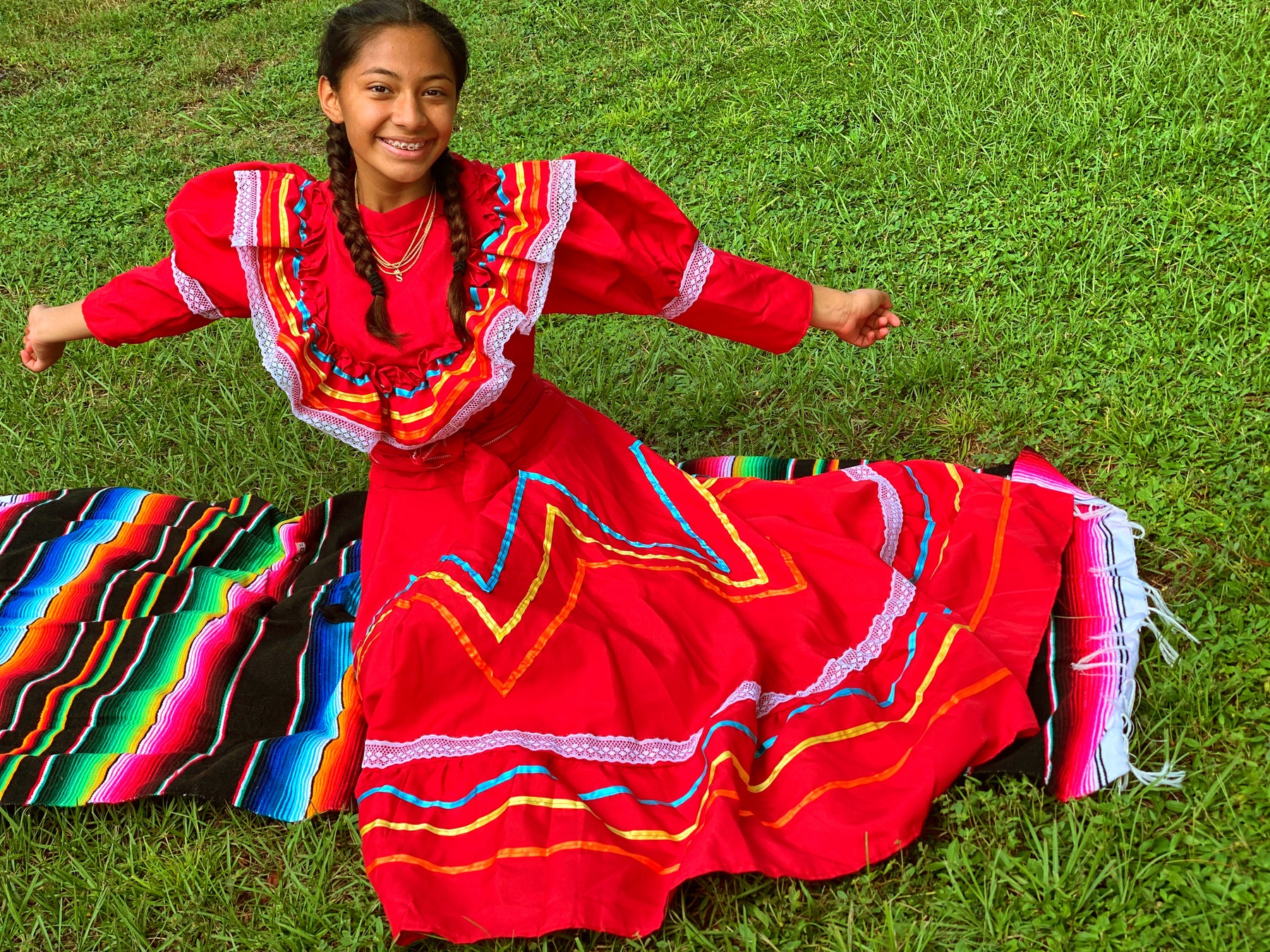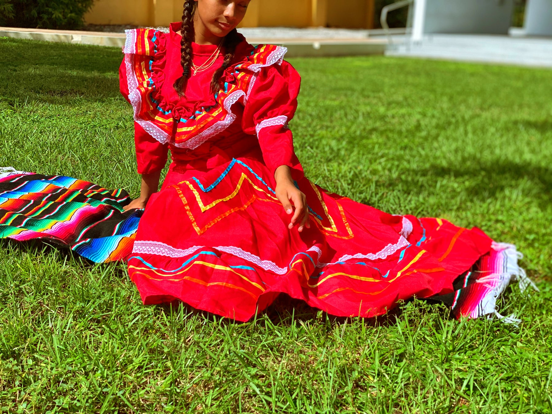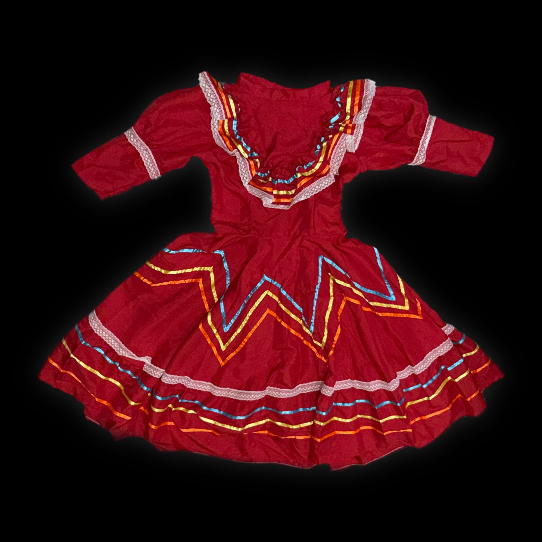 This children’s dress was handmade in Guatemala, featuring panels of woven huipil. A huipil is a traditional garment with origins across Mesoamerica. The huipil (from Nahuatl huīpīlli) has been worn for centuries by indigenous women in both Mexico and Central America, with each community creating its own regional styles, colors, and motifs.
